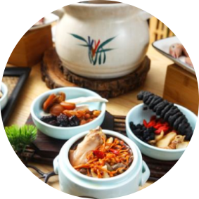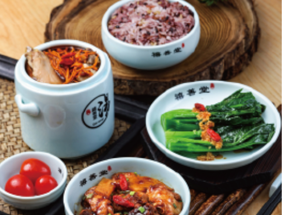 聖女(nǚ)果/青菜/五谷雜(zá)糧飯/藥膳湯/蟲草(cǎo)花(huā)蒸雞